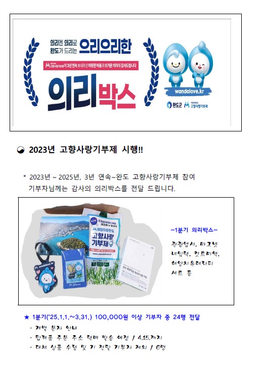 [이벤트 2] 2025년 1분기, "완도 답례품 후기 작성 이벤트" 당첨자 발표